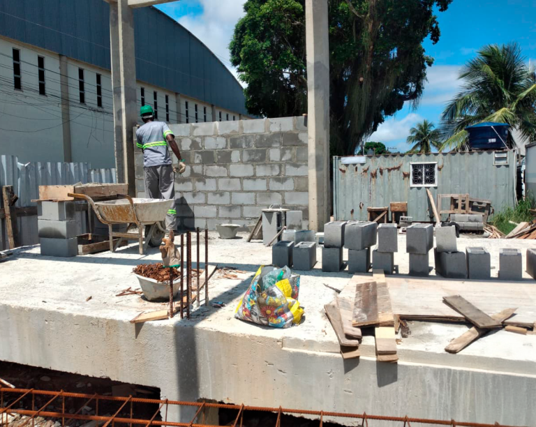 A equipe do PSAM realizou as prensas do pavilhão e assentamento de alvenaria das paradas, obra executada no município de Maricá.