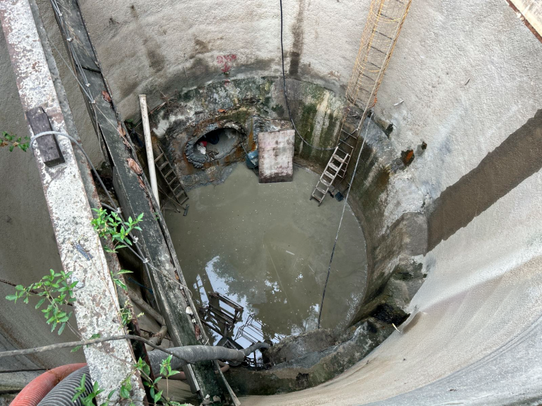 A equipe do PSAM realizou o rejunte entre o trecho 243 – 240 do Poço de Visita (PV).